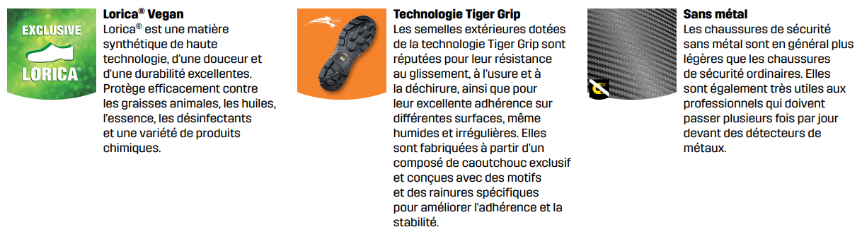 Conçue pour les professionnels de l'alimentation, de la santé et de la peinture, la chaussure de sécurité MODULO PURE est dotée d'une tige en Lorica facile à nettoyer et résistante aux taches et d'une semelle extérieure en caoutchouc non marquant Tiger Grip qui offre un niveau extrême d'adhérence et de traction. Le cercle de rotation sur l'avant-pied permet de pivoter en douceur tout en conservant l'adhérence. Entièrement dépourvue de métal et végétalienne, cette chaussure allie sécurité, confort et hygiène dans un design élégant.
